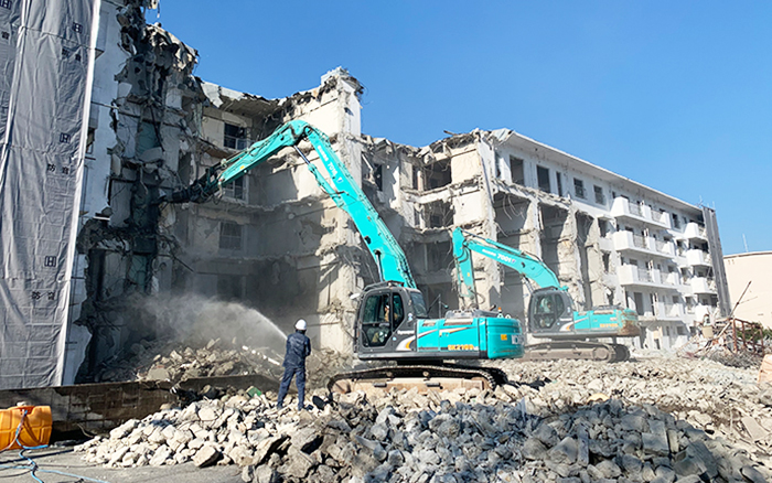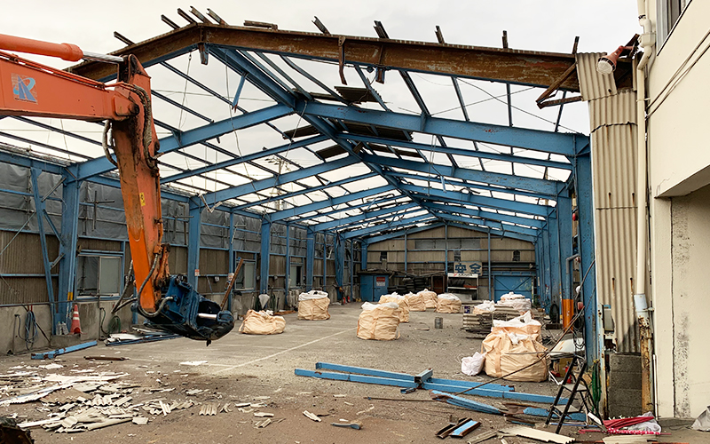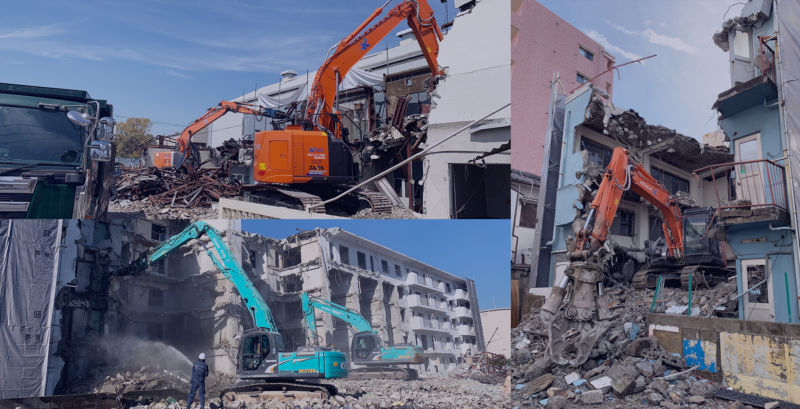 騒音や埃など周りに大きく影響をおよぼしますが、お客様にはもちろんのこと、近隣の方へも出来るだけご迷惑をおかけしないように心がけております。さらに、他事業部との連携により、環境にも配慮した解体工事に取り組んでおります。