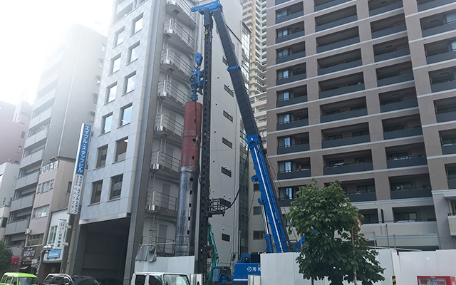 クレーンまたは杭打ち機本体により既存杭を引抜く杭・引抜き工事。